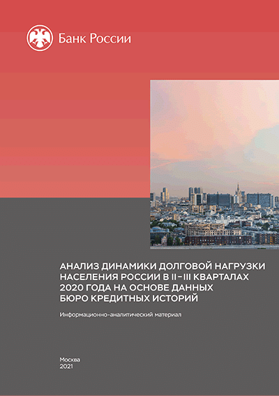 Анализ динамики долговой нагрузки населения России на основе данных бюро кредитных историй : информационно-аналитический материал / Центральный банк Российской Федерации, Департамент финансовой стабильности. — Москва : Банк России , 2020, N 2/3 кв.. — 2020.