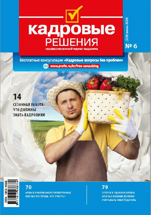 Кадровые решения : профессиональный журнал кадровика. — Москва : Профессиональное издательство , 2024, N 6. — 2024.