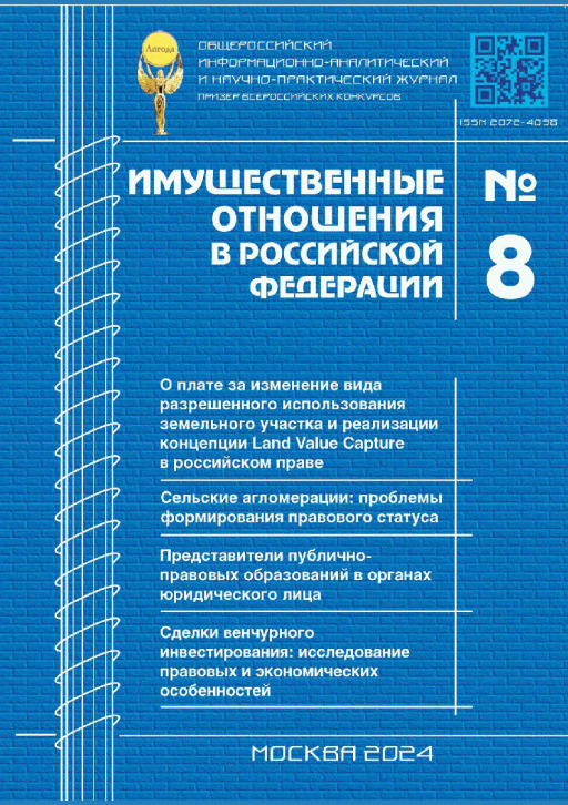 Имущественные отношения в Российской Федерации. — Москва : Московский институт экономики, политики и права , 2024, N 8. — 2024.