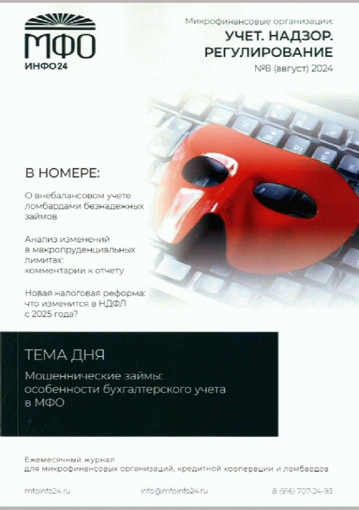 Микрофинансовые организации: Учет. Надзор. Регулирование, 2024, N 8