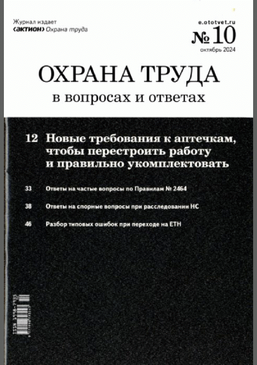 Охрана труда в вопросах и ответах. — Москва : Актион-МЦФЭР , 2024, N 10. — 2024.