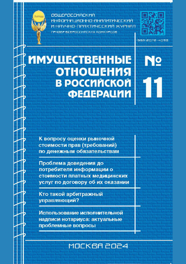 Имущественные отношения в Российской Федерации. — Москва : Московский институт экономики, политики и права , 2024, N 11. — 2024.