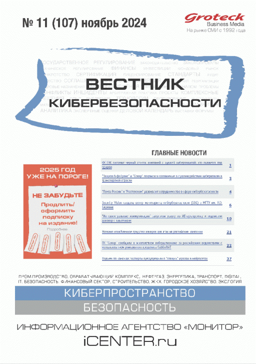 Вестник кибербезопасности. — Москва : Монитор , 2024, N 11. — 2024.