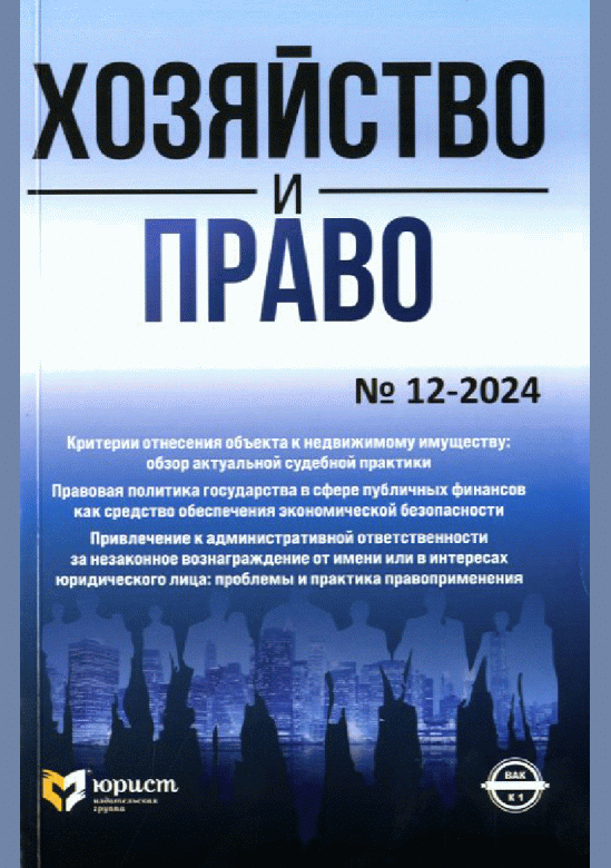 Хозяйство и право. — Москва : Юрист , 2024, N 12. — 2024.