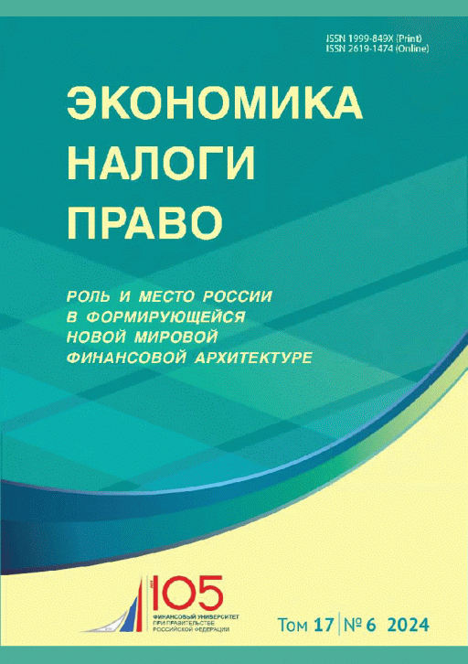 Экономика. Налоги. Право. — Москва : Финансовый университет при Правительстве Российской Федерации , 2024, N 6. — 2024.