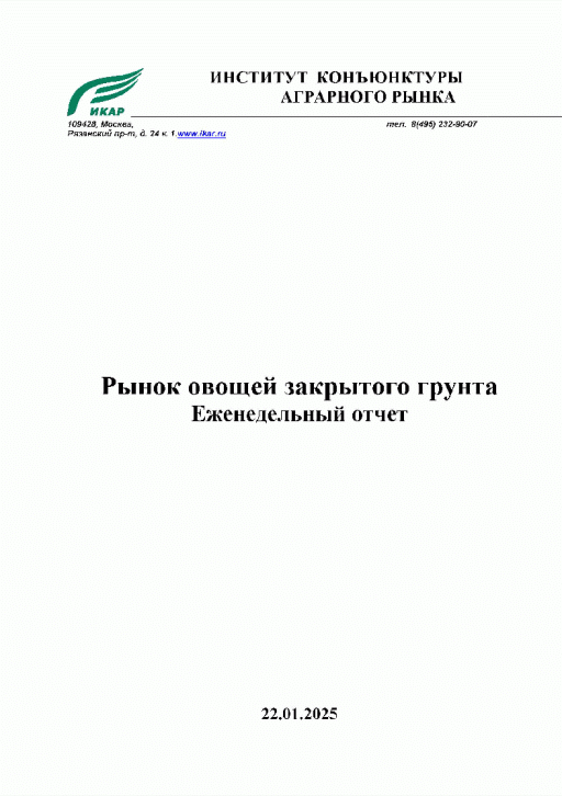 Рынок овощей закрытого грунта. — Москва : Институт конъюнктуры аграрного рынка , 2025, N 22.01.2025. — 2025.