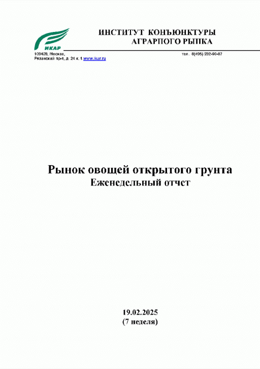 Рынок овощей открытого грунта. — Москва : Институт конъюнктуры аграрного рынка , 2025, N 19.02.2025. — 2025.