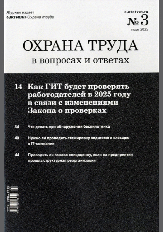 Охрана труда в вопросах и ответах. — Москва : Актион-МЦФЭР , 2025, N 3. — 2025.