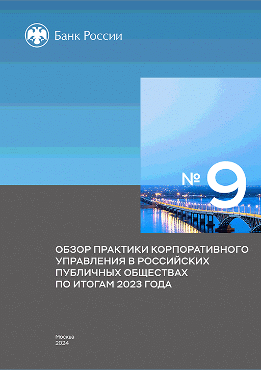 Обзор практики корпоративного управления в российских публичных обществах / Центральный банк Российской Федерации, Департамент корпоративных отношений. — Москва : Банк России , 2024, N 9. — 2024.