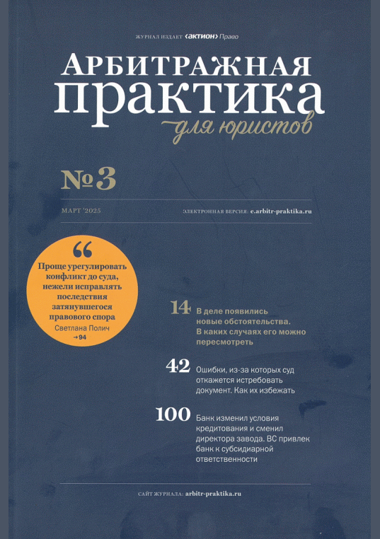 Арбитражная практика для юристов. — Москва : Актион-МЦФЭР , 2025, N 3. — 2025.